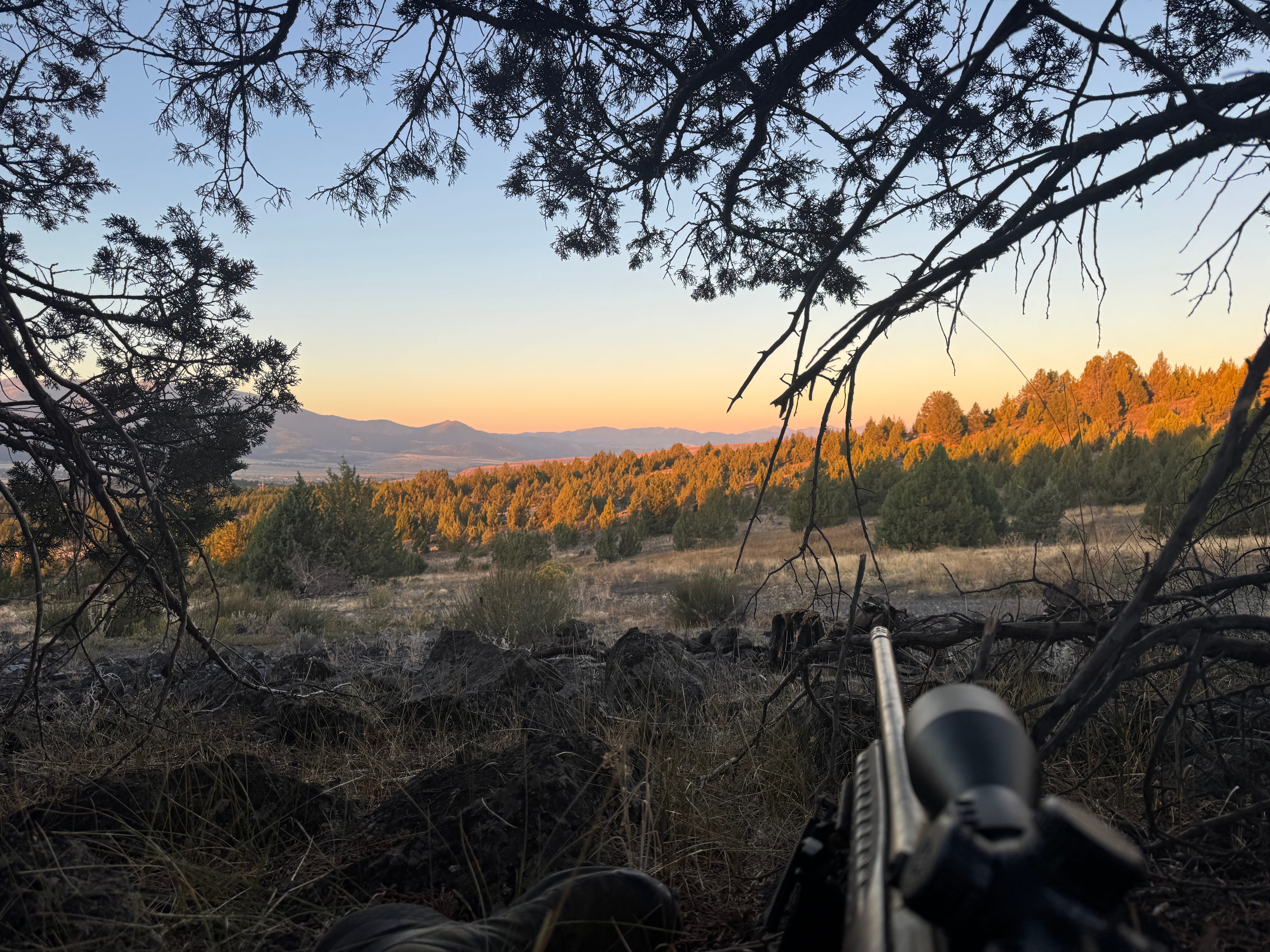 Up hours before the sun. Back to the same juniper tree. Watching sunrise. Praying for elk. Nothing.